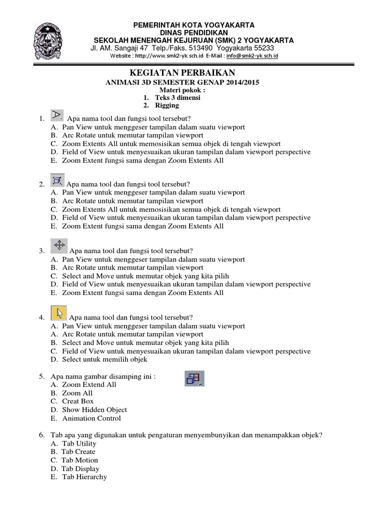 25 contoh soal dan jawaban teori kejuruan multimedia. Sebutkan tahap dasar pembuatan animasi 3 dimensi. Soal dan jawaban bahasa indonesia kelas 11. Soal pilihan ganda dan esay serta jawaban animasi 2d 3d kelas xi multimedia semester i. 80 soal seni budaya dan kunci jawaban kelas 7 smp kherysuryawan id.