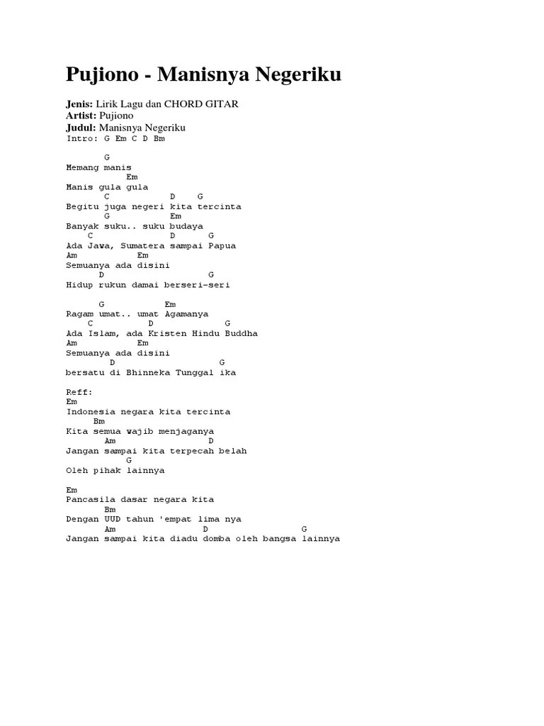 Berikut ini lirik dan chord lagu manisnya negeriku dari pujiono. Semanis manis gula gula madu. Download lagu terbaru 2021 mudah, . G em c d bm g memang manis em manis gula gula c d g begitu juga negeri kita tercinta g em banyak suku. Kabar baik buat zahir mania di manapun kamu berada.